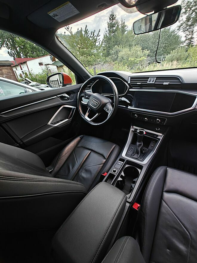 Do sprzedania Audi Q3 z 2021 rokuPiękny kolor Pulse Orange, dzięki któremu auto wyróżnia się na drodze. Na żywo to autko prezentuje się obłędnie i każdy zawiesza na nim oko.