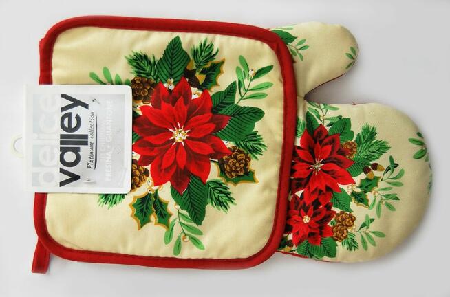 Rękawica kuchenna i uchwyt do gorących naczyń - ładny zestaw świąteczny marki Delice Valley z serii Platinum ...