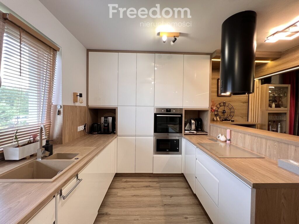 drewnianych elementów i zabudowy wykonanej na zmówienie. Kuchnia