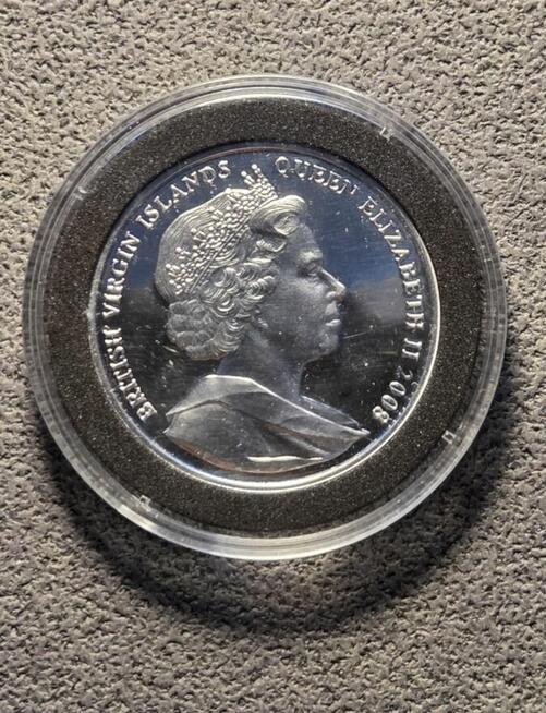 Numizmat, którego emitentem są Brytyjskie Wyspy Dziewicze. Numizmat to gradka dla kolekcjonerów. Awers przedstawia ...