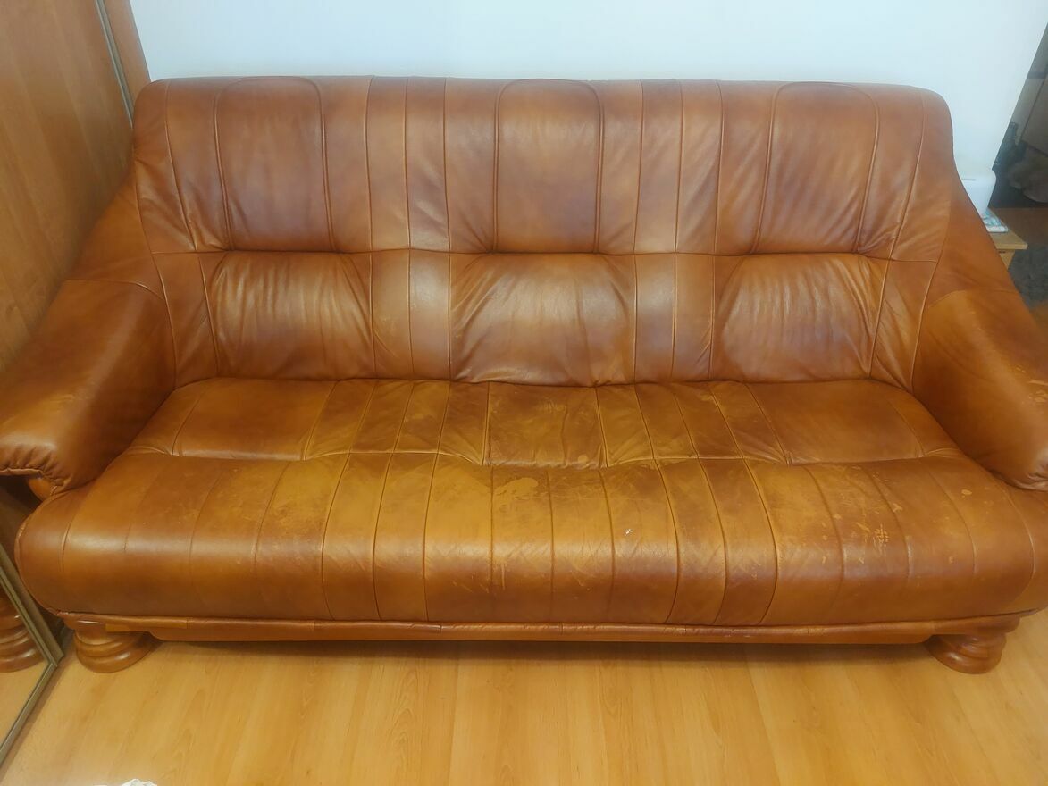 CENA DO NEGOCJACJI Sprzedam wygodna skórzana kanape z dwoma fotelamiKatarzyna